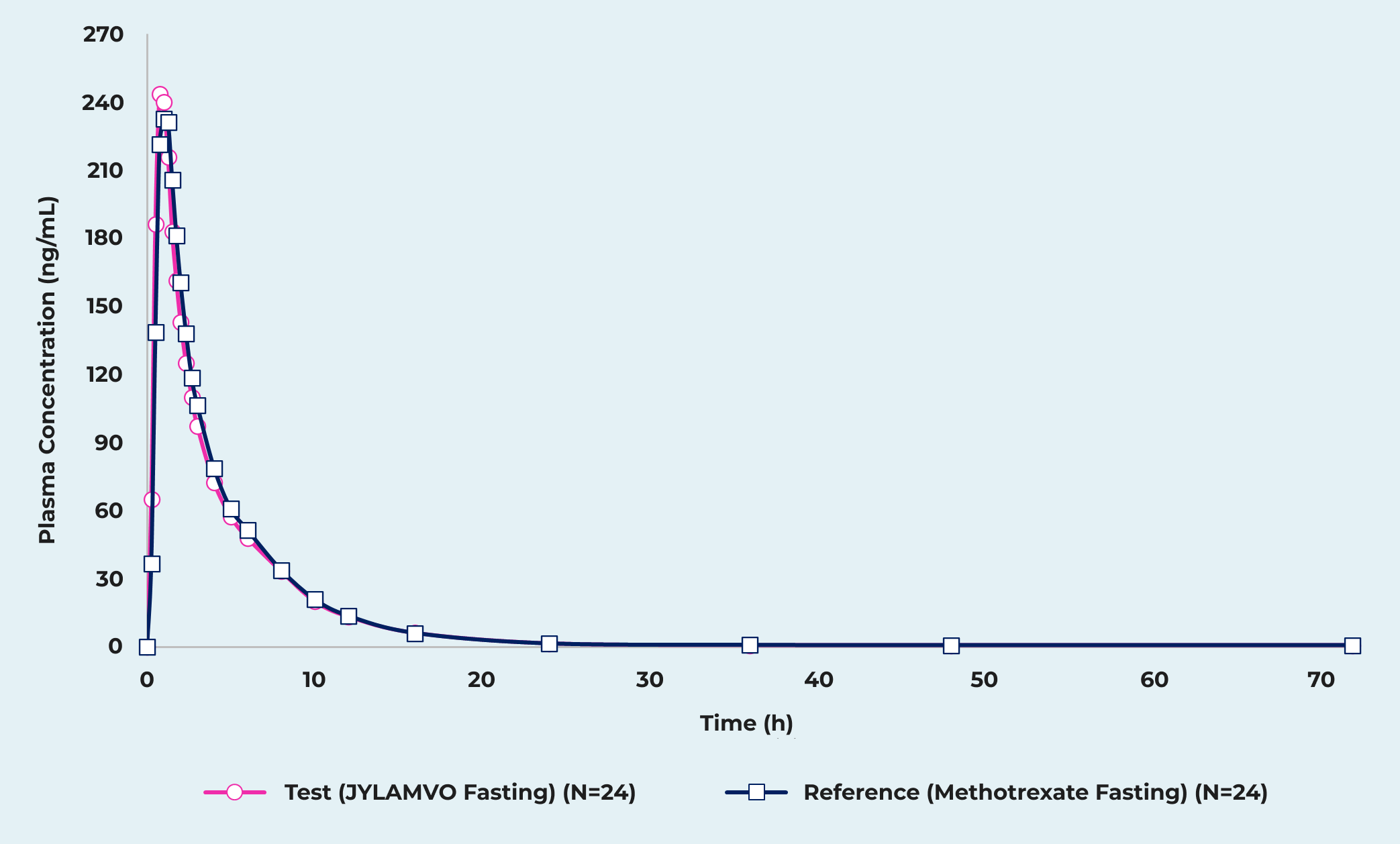 JYLAMVO® is labeled with the same safety and efficacy profile as methotrexate3.